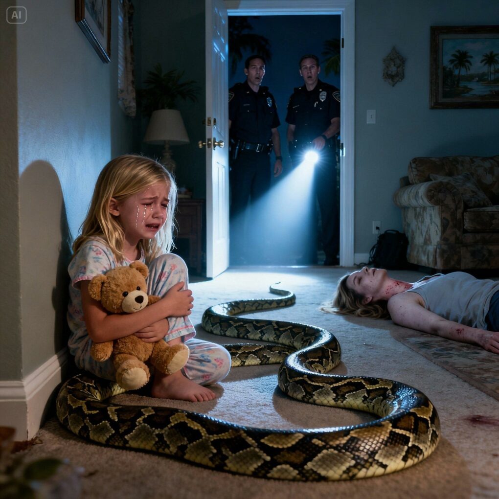 Then they saw the python—its thick, muscular body stretched across the hallway floor. Travis Cole was half-propped against the wall, his arm badly bitten. His pulse was weak, but alive. Emma sat on the floor nearby, hugging herself tightly, tears streaking down her cheeks.