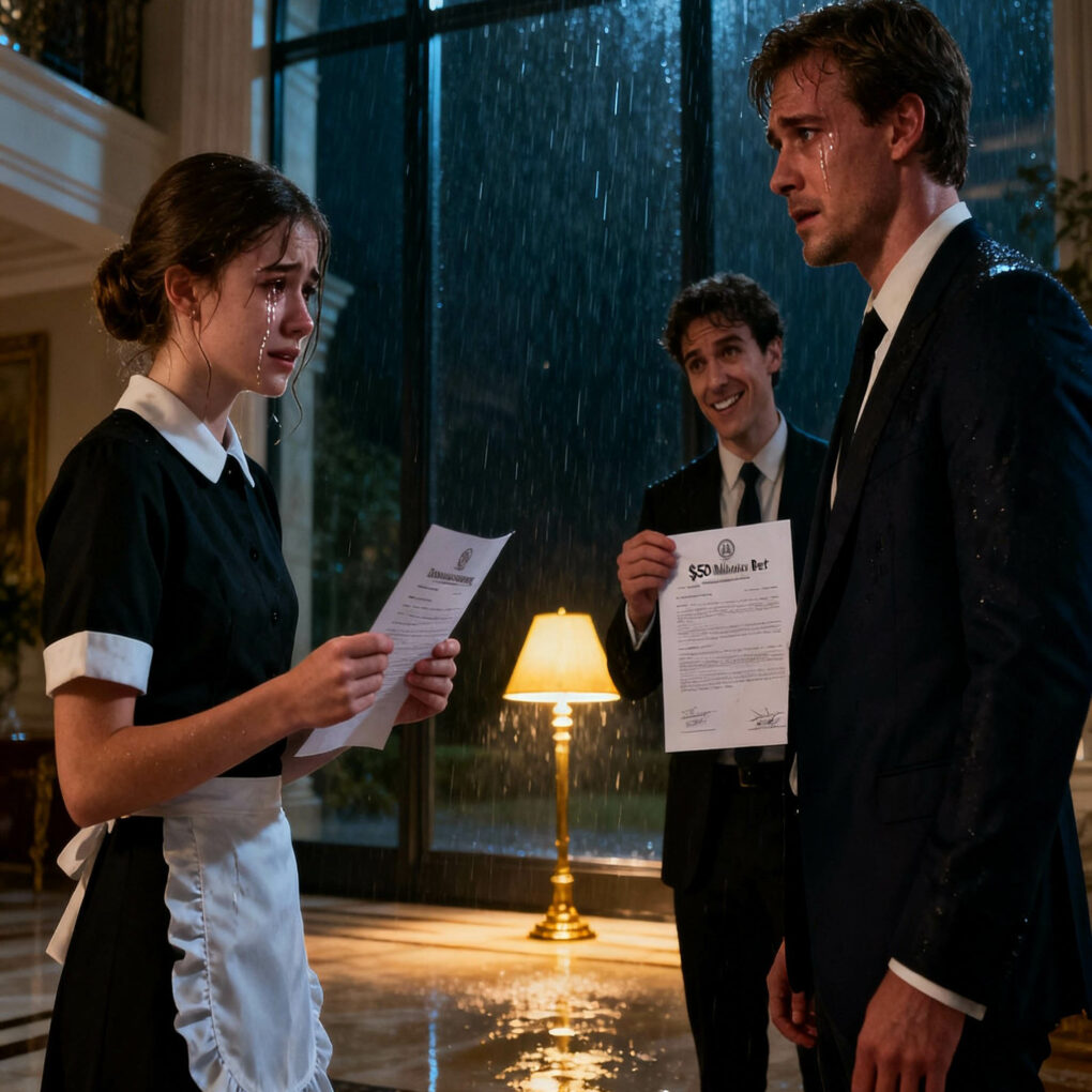 One night, as rain pounded against the mansion windows, he saw her crying quietly in the kitchen, holding her brother’s hospital bill. Something inside him shifted.