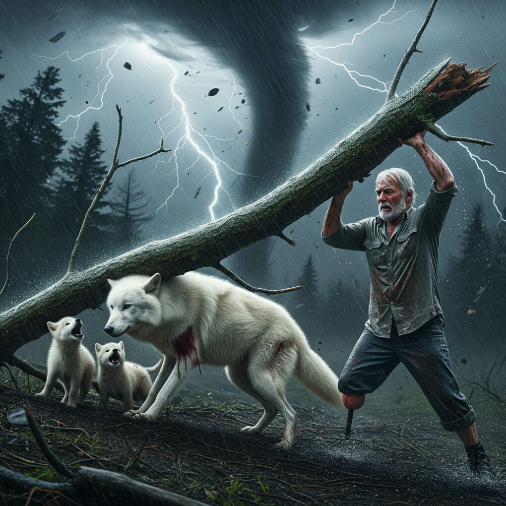 Daniel grabbed his flashlight and rushed into the storm. Trees bent in the violent wind. “Luna!” he shouted. Then he saw her—lying beneath a fallen branch, one paw pinned, her pups whining beside her.