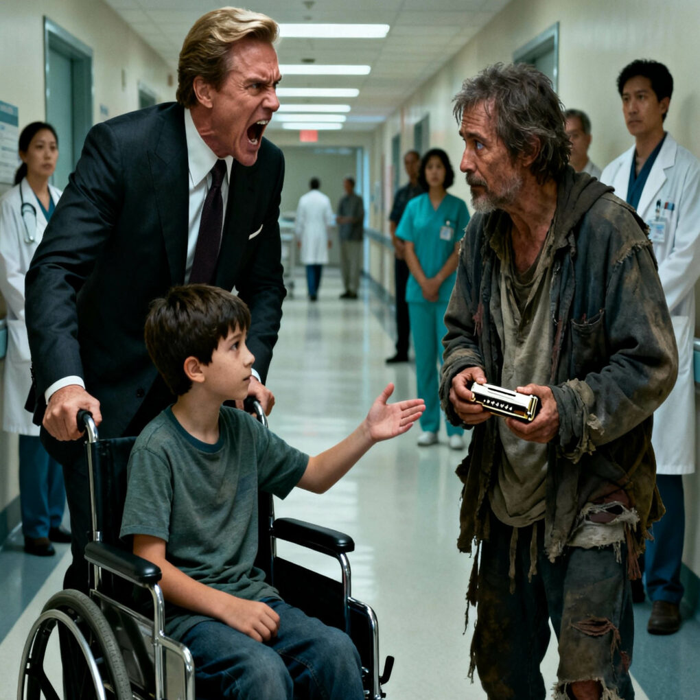 Ethan whimpered at the sudden anger. Daniel turned the wheelchair sharply, wheeling him inside. The homeless man sighed, whispering after them, “He’s got music inside him, you know. Just needs someone to listen.”