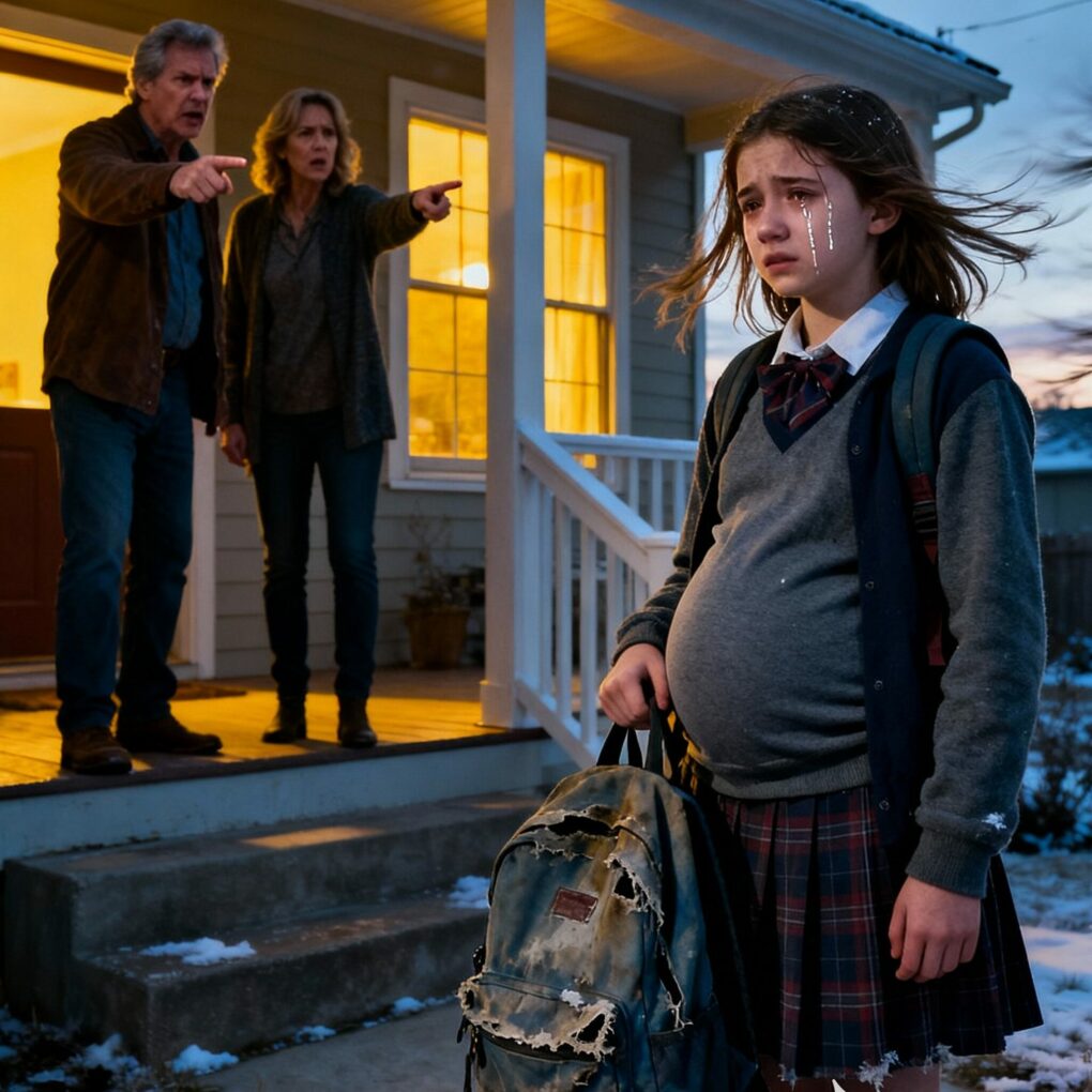 At fourteen, Emily Parker never imagined that a single moment could shatter her world. That November afternoon in Dayton, Ohio, she sat on her family’s front porch, her small duffel bag at her feet, her heart pounding in her chest. The wind sliced through the quiet neighborhood, carrying the scent of burning leaves and distant exhaust. Inside the house, her mother, Karen, held the pregnancy test Emily had tried to hide, the white strip trembling in her hand like a verdict.
