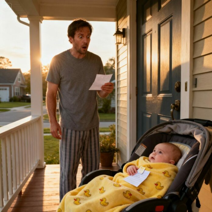 It was 6:30 a.m. on a chilly Saturday morning in Seattle when my doorbell rang nonstop. Still half-asleep, I stumbled toward the door, thinking it was a delivery driver who got the wrong address. But when I opened it, there was no one — just a baby in a car seat, wrapped in a yellow blanket with tiny ducks on it. His big blue eyes blinked up at me, and a folded note was taped to his tiny hand.