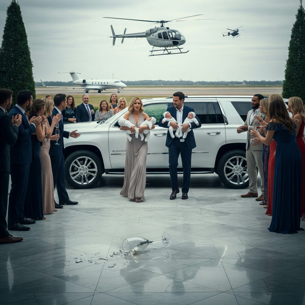 The helicopter blades whirred above the pristine lawn as we stepped out. Lucas held my hand firmly, his calm strength a shield against the storm I was about to face. My twins, Oliver and Lily, were giggling in their car seats, oblivious to the tension, and yet their presence amplified the power of our entrance. Robert’s face, once smug and controlling, froze mid-conversation. His champagne flute trembled in his hand, shattering with a sharp clink as it hit the marble floor.