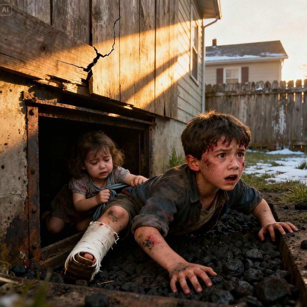 He crawled back for Maisie, who now drifted between trembling sleep and weak coughs. Her fevered skin terrified him. He hooked his arms beneath hers and dragged her across the basement. The effort made his vision blur, but stopping wasn’t an option.