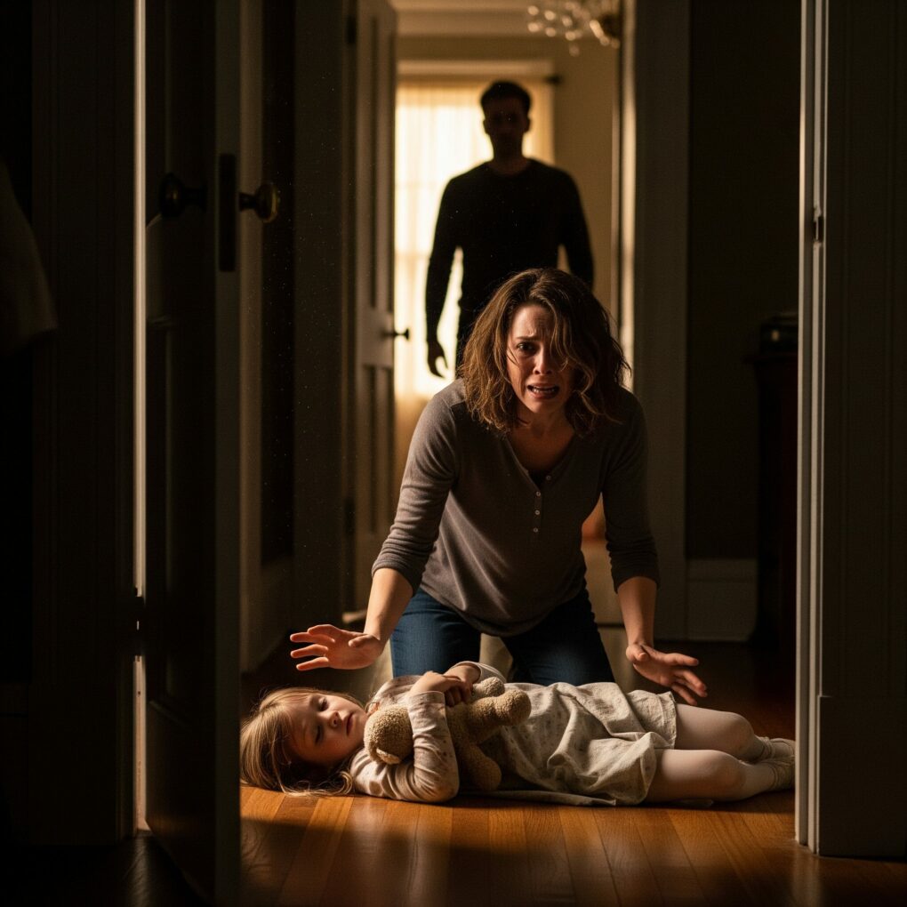 Chloe lay collapsed on the floor, her tiny body curled inward as if trying to protect itself from the world. Her eyes fluttered weakly when she heard my voice. “Mommy…” she whispered before slipping back into a half-conscious daze. I lifted her sleeve, and the faint bruise I once dismissed was now joined by many others—fresh and old, layered like a silent timeline of fear.