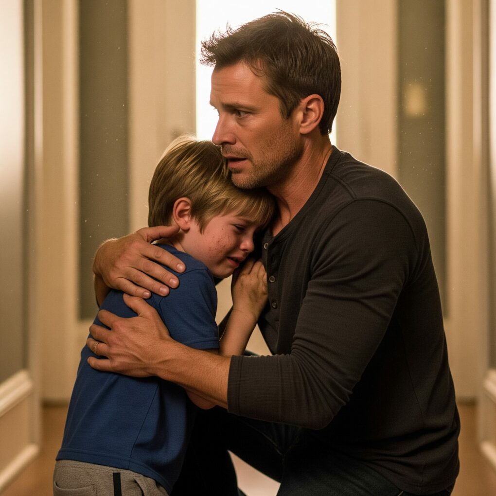 Liam ran down the stairs moments later, launching into Austin’s arms. The bruise across his cheek was deep, purple, unmistakable.