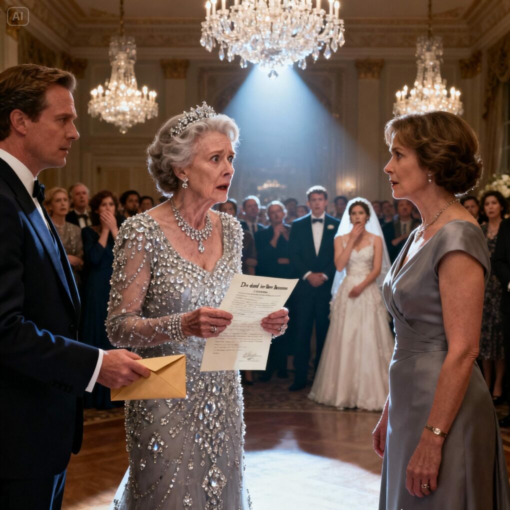 Her heavily jeweled fingers snatched the envelope with visible irritation. “At his own wedding? What nonsense—”