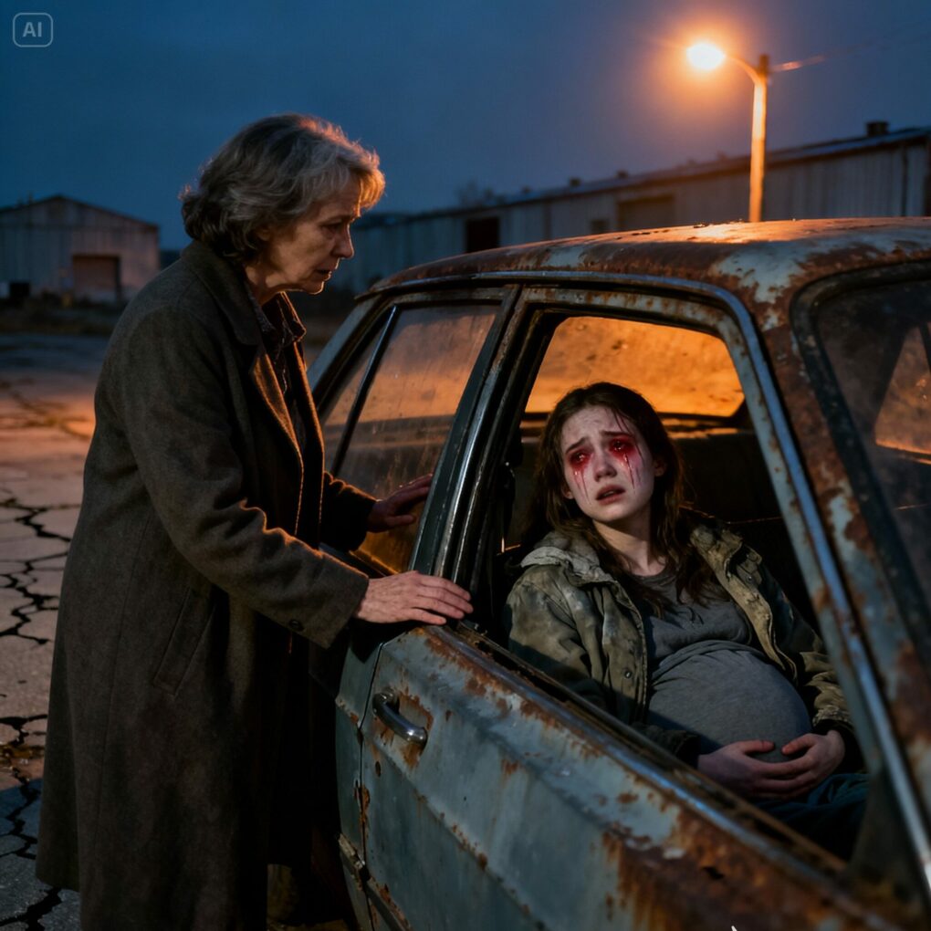 I found Clara in the back corner of an abandoned parking lot near the airport—nineteen years old, pregnant, and curled beneath a pile of worn-out coats inside a rusted sedan. The windows were fogged from her breath, the kind of fog that tells you someone has been living in fear, not comfort. When she looked up and saw me through the glass, her eyes widened in shock. But it wasn’t relief I saw. It was terror. Pure, shaking terror.
