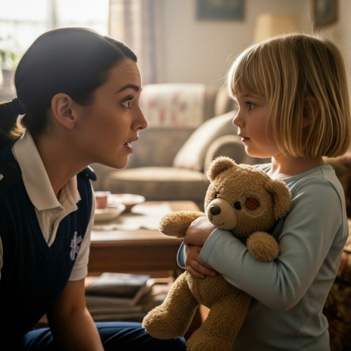 Near the end of our shift, a final call came in: abdominal pain, third floor, run-down building on the east side. A place I’d been before. The patient, a woman in her thirties, recognized me instantly. While I began my exam, soft footsteps approached. A little girl peeked in—a girl with blonde curls, quiet eyes, and the cautious posture of a child used to tiptoeing around adults.