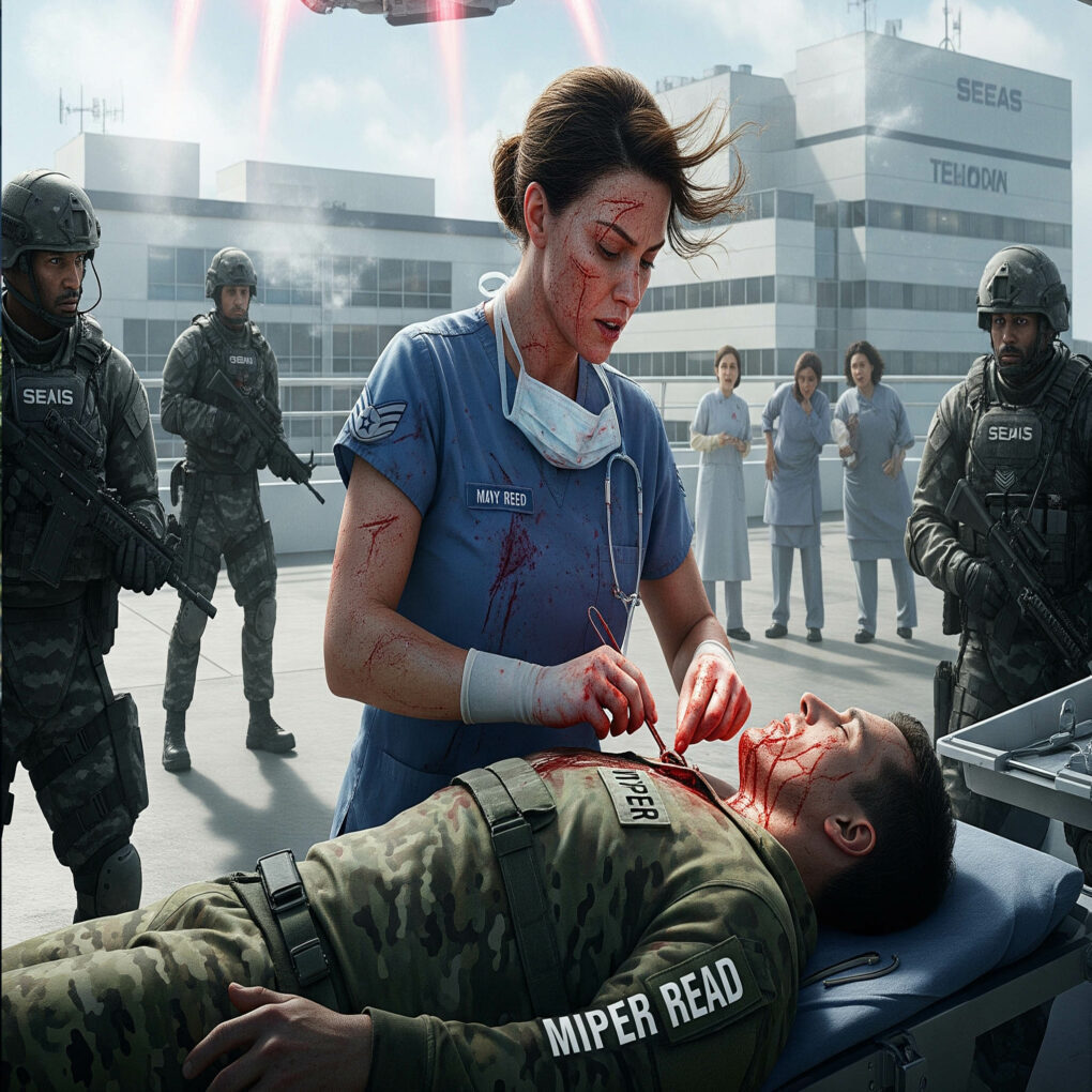 “Move,” I commanded. The young medic struggling beside him stepped aside. My hands went straight to the wound, clamping the ruptured subclavian artery. The spacecraft’s hum vibrated around us as I worked, precise and methodical.