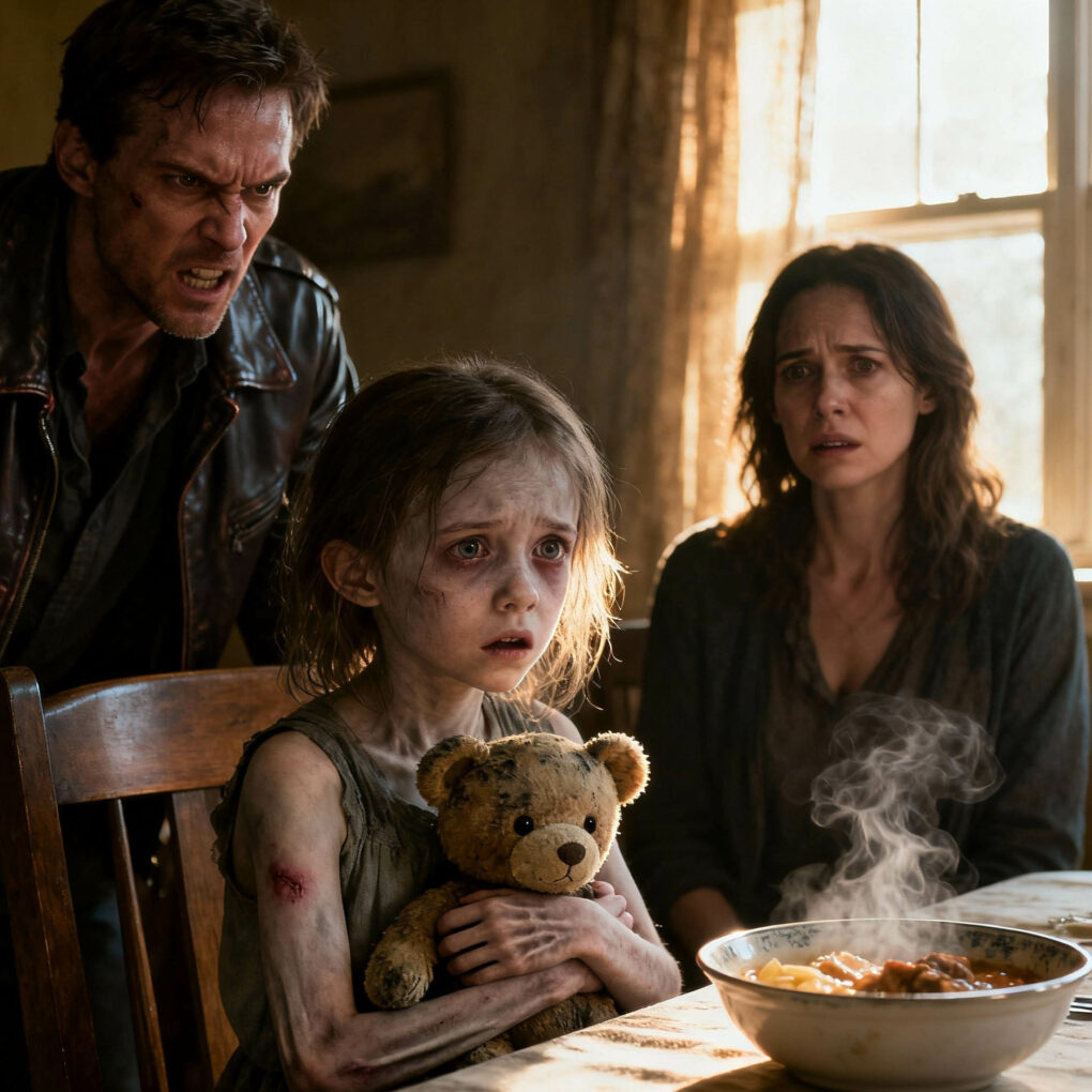 When I offered her real food—warm chicken stew with vegetables—she hesitated, then slowly nibbled, as if testing reality. She whispered, trembling, “I… I don’t want to eat too much. I’ll get points taken.” My blood ran cold. “Points?” I asked. She nodded, pointing to marks on her arms—bruises that matched her father’s description of “disciplinary scores.”