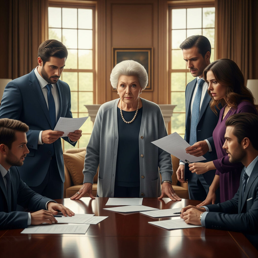 Margaret’s pulse quickened—not from fear, but from a burning awareness. They were dividing her life like a deck of cards, each piece of her empire slipping quietly into their hands. They spoke as if she were already dead, as if she were no more than a signature on a page.