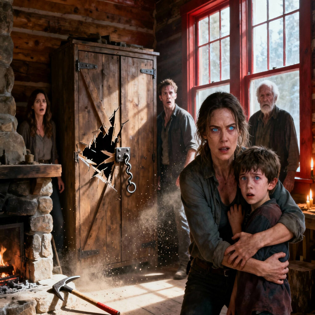 Emily’s heart froze. Ethan’s muffled sobs pierced the cabin. A primal rage ignited inside her. In that moment, the rational, composed Emily disappeared. She scanned the room, eyes landing on a heavy iron crowbar resting on the stone hearth. Adrenaline surged. Without a word, she grabbed it, and in one powerful swing, shattered the doorframe. Wood splintered, the door sagged, and Emily flung it open. She scooped up Ethan, holding him tightly against her chest as his trembling body pressed against her.