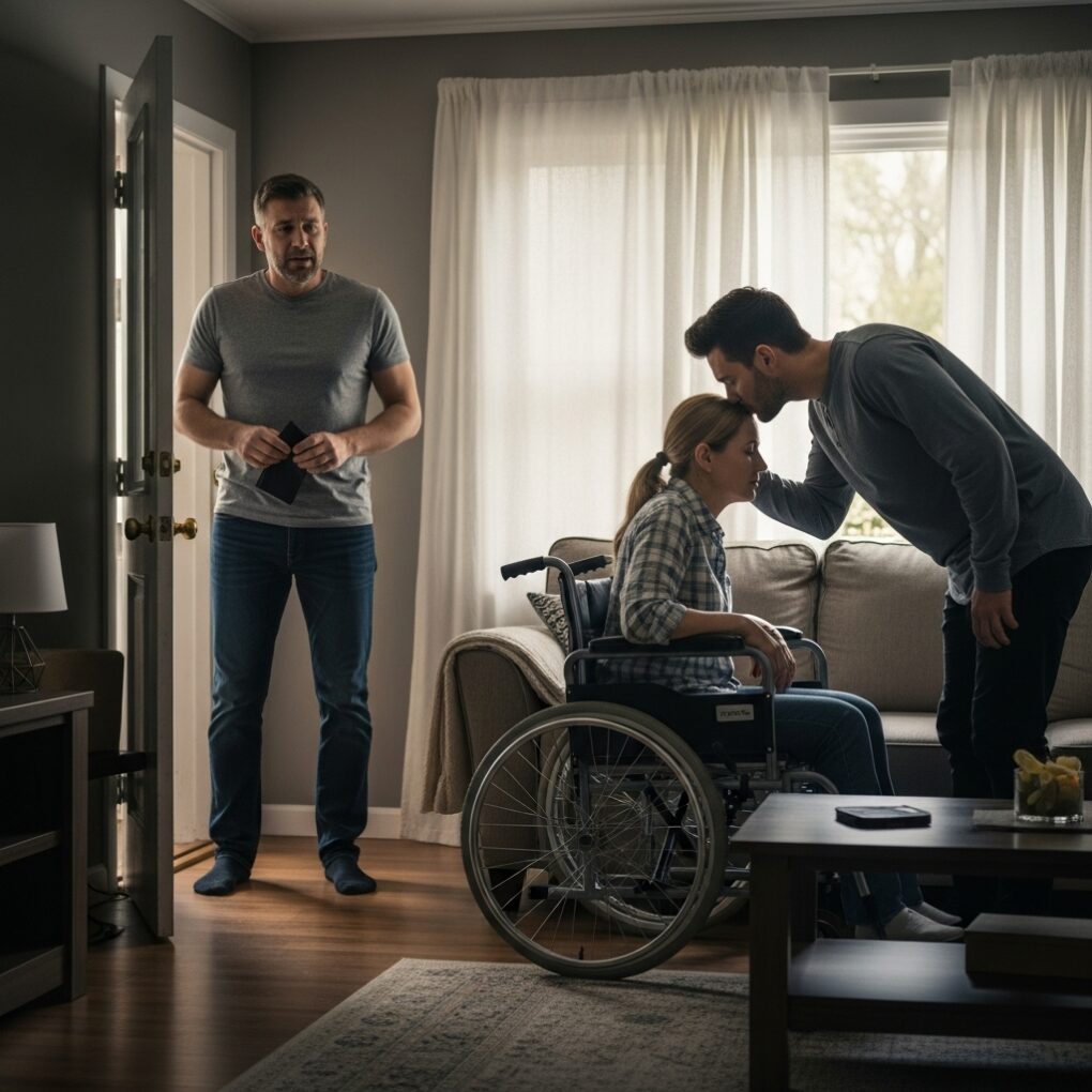 Michael took two steps forward and froze. Emily was in her wheelchair near the couch, and sitting close beside her was Daniel Hayes, a physical therapist who had visited months earlier. Daniel’s hand rested over Emily’s, his thumb brushing gently against her skin. Emily wasn’t pulling away—in fact, she was looking at him with the same gentle tenderness she once reserved for Michael.