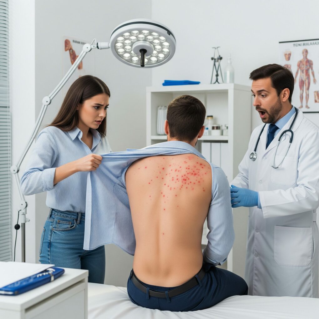 Su espalda estaba cubierta de pequeños bultos rojos agrupados en formas casi simétricas, algunos más recientes, otros cicatrizados. No parecían picaduras. No parecían manchas normales. Parecían… colocados.
