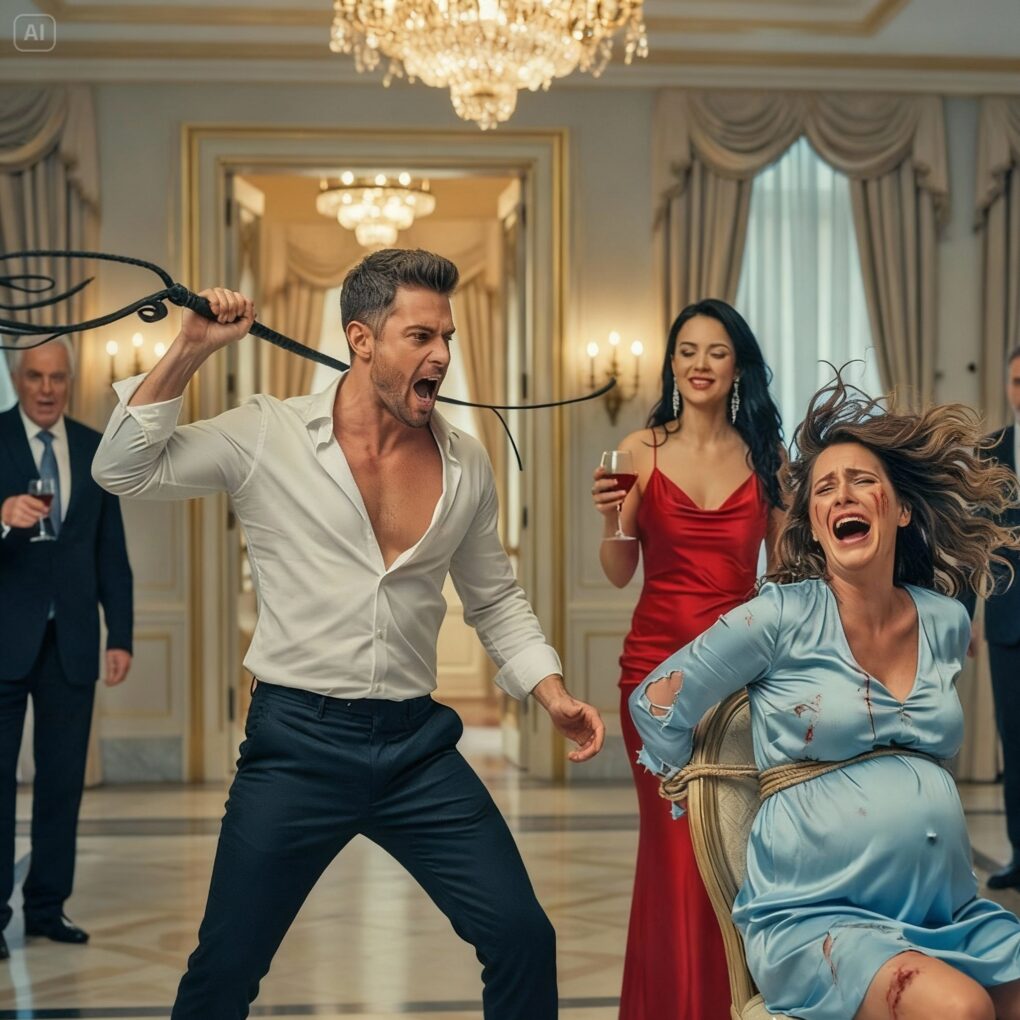 Los primeros golpes resonaron en la sala como truenos. Cada impacto dejaba a Claudia más débil, doblándose sobre sí misma para proteger a su bebé. La sangre comenzó a manchar su vestido azul. Nadie se atrevía a moverse. Valeria observaba con indiferencia, tomando champagne.