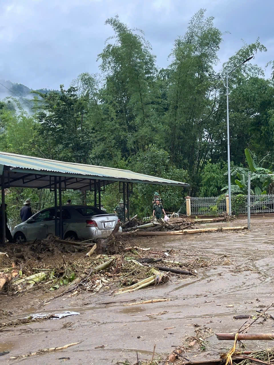 Lượng lớn bùn đất đá, cây cối trôi xuống đường tỉnh 257B kéo dài từ Trạm Y tế xã Đồng Phúc đến khu vực trường học với chiều dài khoảng 300m, bùn đất ngập cao bình quân khoảng 40-50cm.Lượng lớn đất đá theo dòng nước lớn đổ về phía khu vực người dân sinh sống. Ảnh: Đ.V