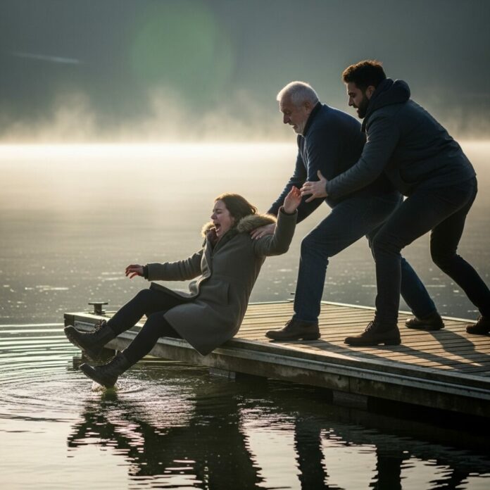 Un empujón brusco la hizo caer. El frío del agua la atravesó como cuchillas. Golpeó su cabeza contra algo sumergido y quedó momentáneamente inconsciente. Intentó nadar, pero el choque del agua helada paralizó sus músculos.