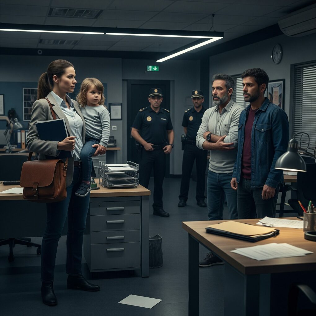 Lucía llegó al despacho de policía con su hija en brazos. Su tía Marta la acompañaba, visiblemente nerviosa, pero Lucía permanecía imperturbable. Allí estaban Hamza e Imran, obligados a presentarse ante la autoridad por irregularidades financieras y reclamaciones de herencia. El rostro de Hamza se tornó pálido al verla; la sorpresa y el miedo eran evidentes. Imran sudaba, con los ojos desorbitados, consciente de que su juego había terminado.