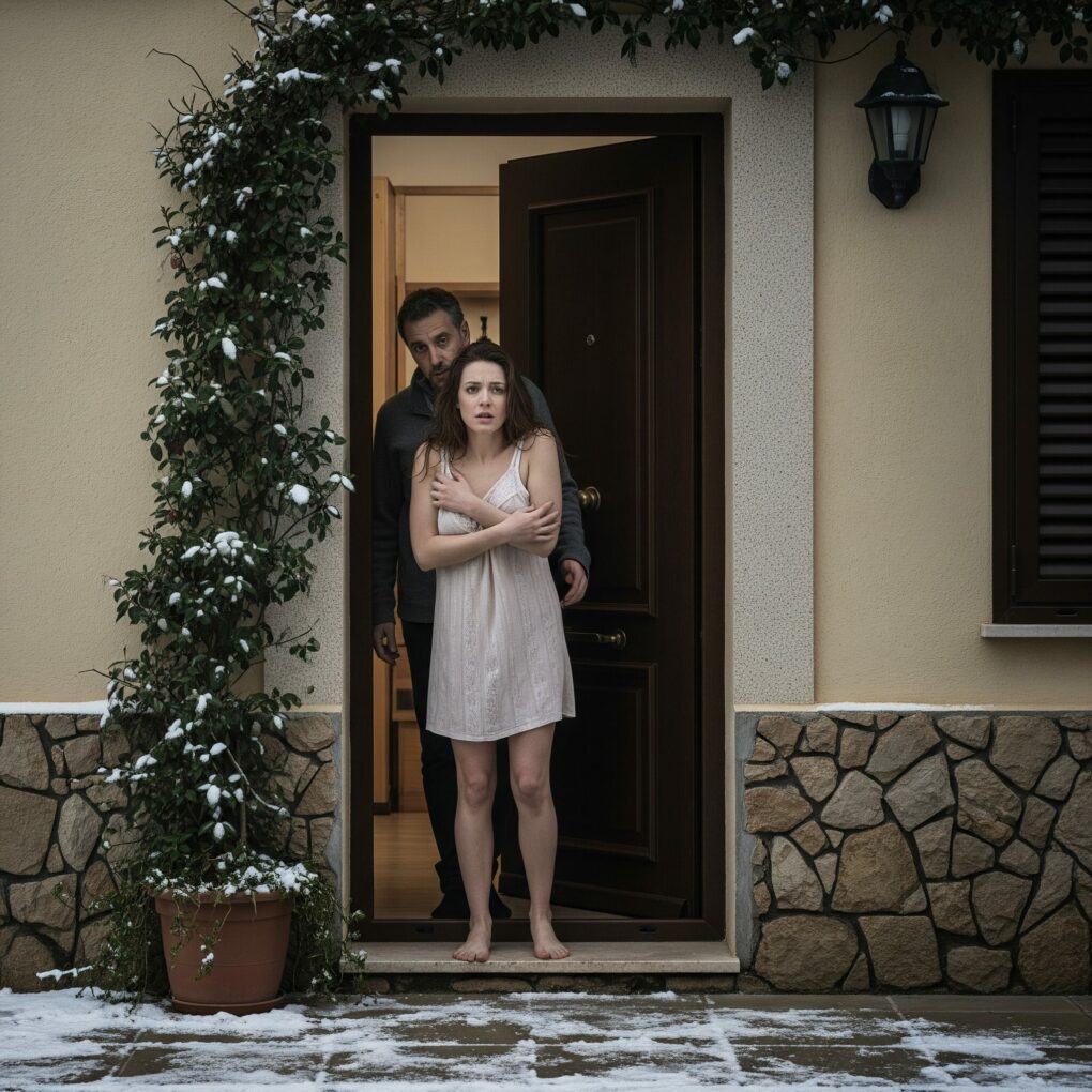Y antes de que ella pudiera reaccionar, la empujó hacia la puerta, la cerró de golpe y echó el cerrojo. Olivia quedó afuera, temblando bajo la nieve que caía sin tregua, vestida únicamente con un camisón fino. El viento le cortaba la piel y sus manos ya no respondían bien. Golpeó la puerta, llamó a Daniel por su nombre, pero el silencio fue la única respuesta.