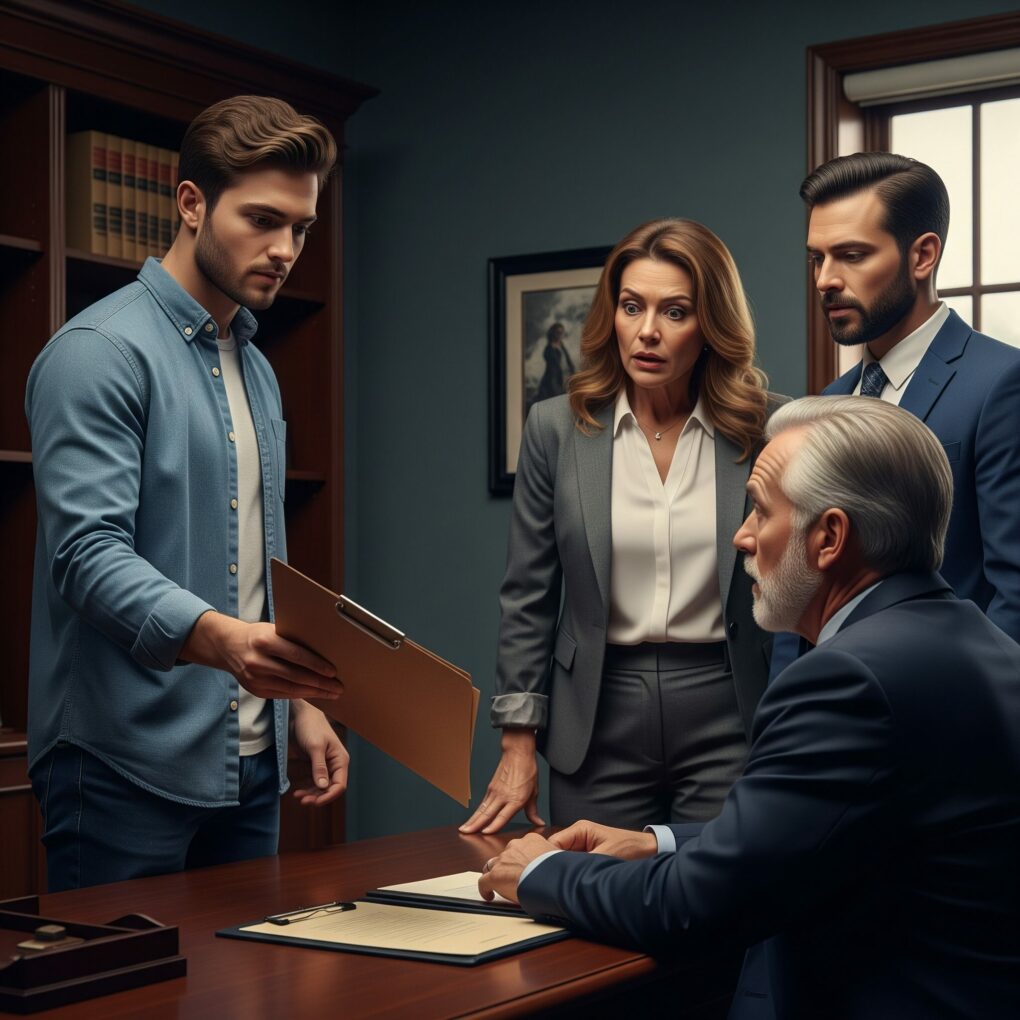 Linda’s fingers trembled as she snatched the folder from the lawyer. Her eyes darted across the pages, scanning every line with growing panic. “This… this can’t be real,” she said, voice cracking. “Evan, what is this supposed to mean?”