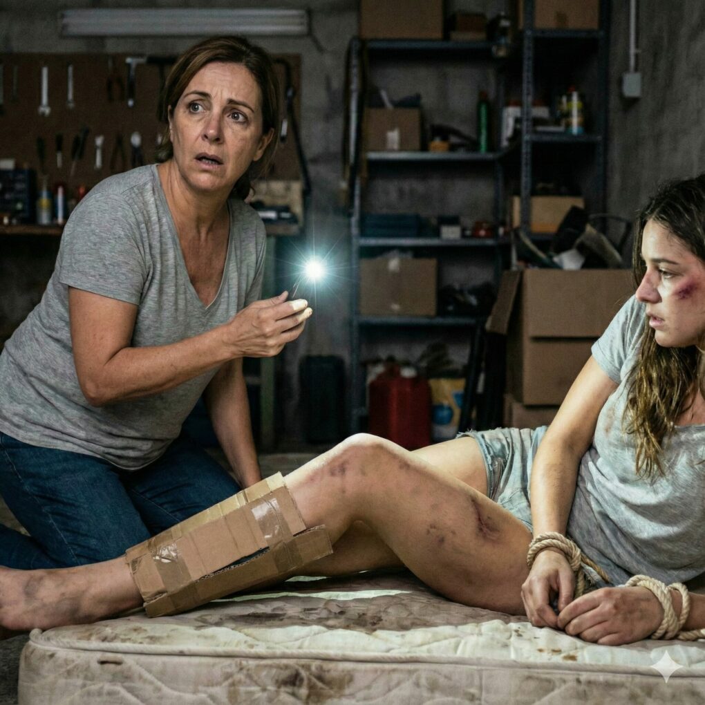 La luz del teléfono temblaba violentamente en mi mano, creando sombras danzantes sobre las paredes de hormigón desnudo, pero lo que iluminaba en el suelo era inconfundible y devastador. Allí, sobre un colchón sucio y rodeada de botellas de agua vacías, estaba Clara. No se parecía a la mujer vibrante que había visto la semana pasada. Estaba pálida, con el rostro demacrado y un hematoma oscuro y feo extendiéndose por su pómulo derecho. Su pierna izquierda estaba torcida en un ángulo antinatural, hinchada y amoratada, claramente rota y sin tratar.