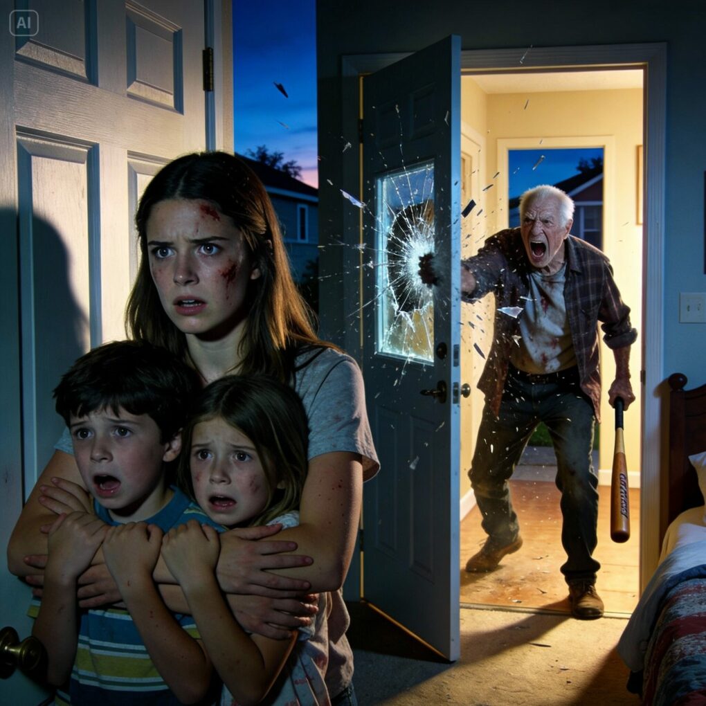 I sprinted upstairs to the children, pushing them into the closet and positioning myself between them and the door. Downstairs, glass shattered—the sliding door. Heavy footsteps echoed through the house, followed by his voice in a chilling singsong tone, calling for the kids as if this were a game.