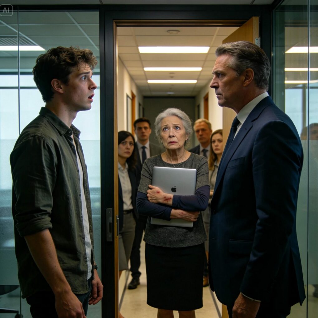 “Don’t lie to me. I saw the security footage.” Ethan’s jaw clenched. Richard continued. “You pushed a junior analyst into a filing cabinet yesterday. Hard. Then you threatened him afterward when he asked for help.”