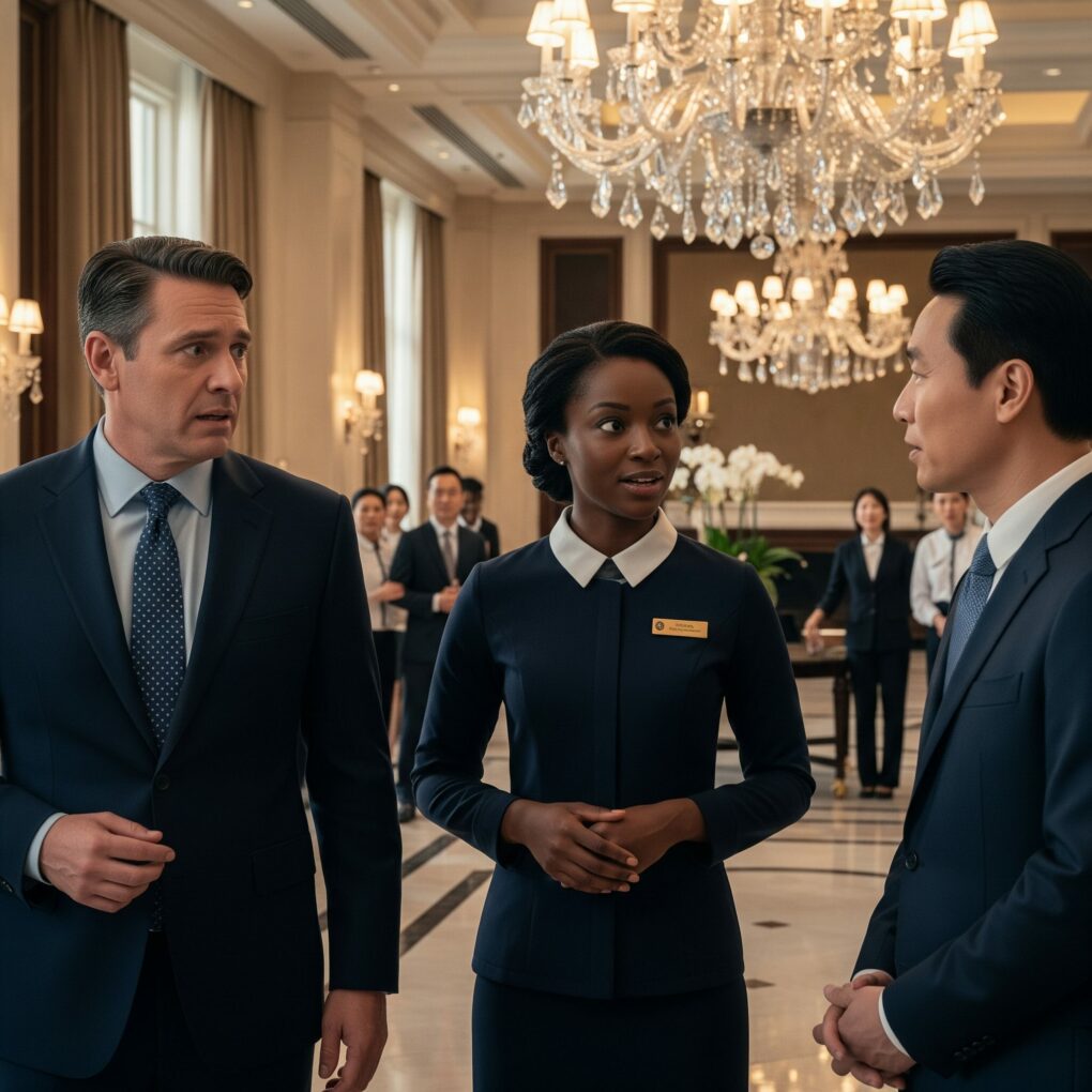Mr. Zhang’s brow furrowed. Silence stretched in the grand lobby. Other staff shifted uneasily, feeling the tension radiate from the manager.