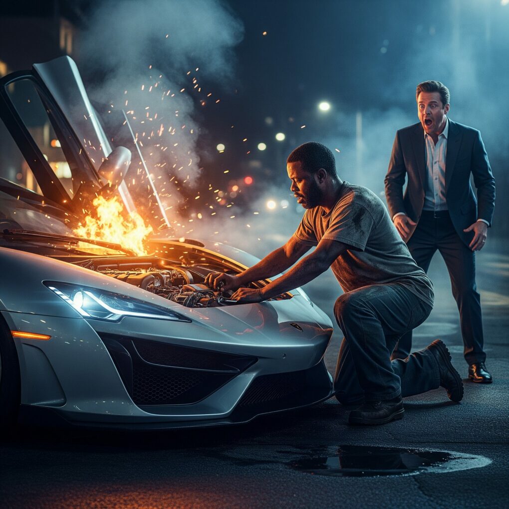 Minutes passed. Sparks flew as Tyrone adjusted wires, replaced a broken module, and manipulated the engine with ingenuity James hadn’t imagined. Suddenly, the car roared back to life, its engine purring like new.
