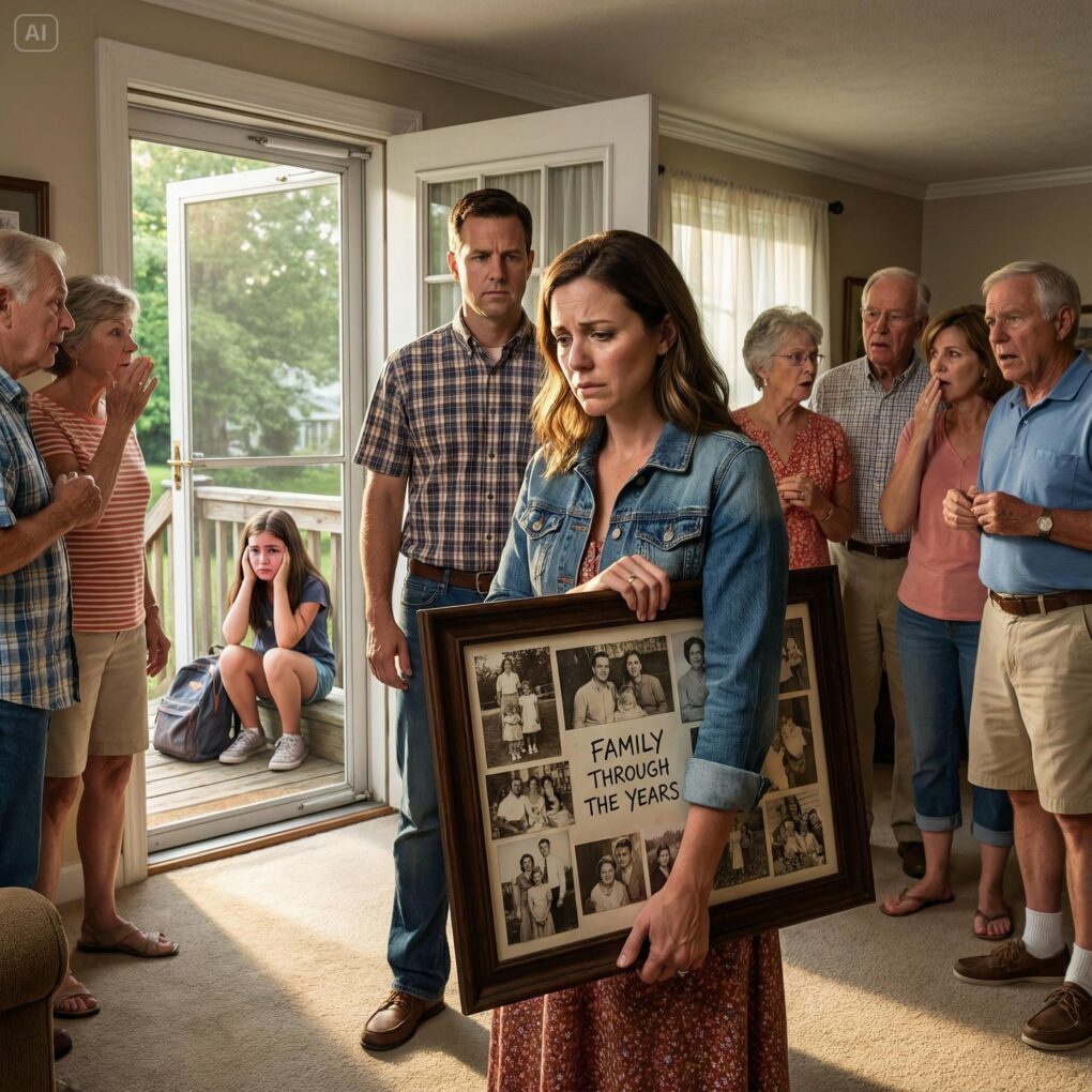 I didn’t yell. I didn’t lecture. I walked quietly to Emily, lifted her chin, and told her we were leaving. But before we left the house, I went into the living room, pulled the huge, framed “Family Through the Years” photo collage from the wall, and placed it gently on the table. Everyone stopped talking. All eyes followed me.