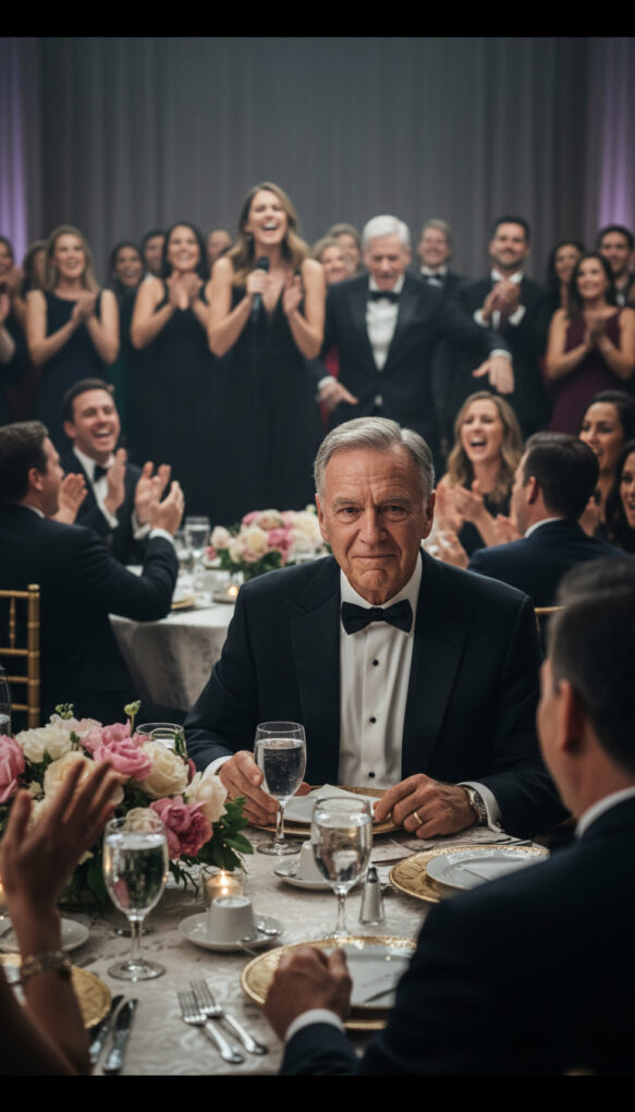 A glass shattered somewhere behind us—someone bumped the champagne tower—and the sudden crash made the entire room gasp.