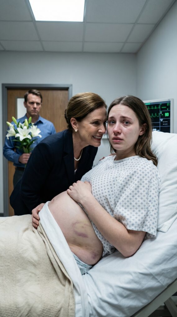 My fingers slipped. His mother’s porcelain dish shattered across the dinner tiles—one bright crack that turned the whole room cold. My husband’s chair scraped back. “Stupid,” he hissed, loud enough to make everyone freeze. “Please… I’m five months—” I didn’t finish. The first hit stole my breath, the next stole my balance. I remember my hands on my belly, begging, Stay with me, baby… I woke in the ER, blood on the sheets, my throat raw from praying. Then she leaned close, perfume sweet as poison. “If anyone asks…” she whispered, smiling, “…you fell.” And that’s when I realized the dish wasn’t what broke.