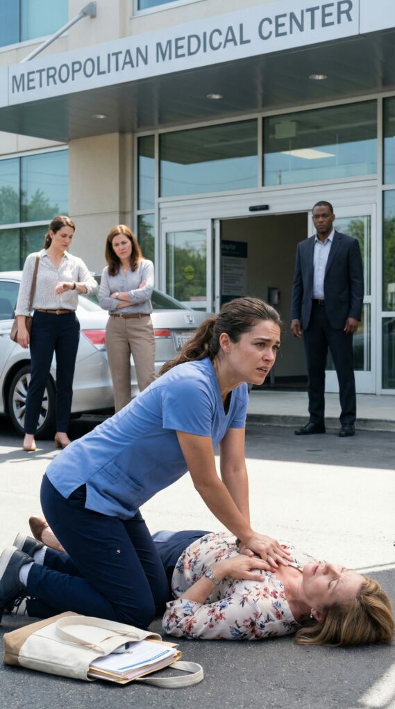 El pánico quiso subirme por la garganta, pero lo empujé hacia abajo como me enseñaron. “Mírame, por favor, mírame”, repetí, acercando mi oído a su boca para escuchar si el aire entraba. Le tomé el pulso: rápido, irregular, como un tambor desordenado. El hombre lloraba. “¡Se llama Dra. Harper! ¡Por favor!”, gritó, como si el nombre pudiera salvarla.