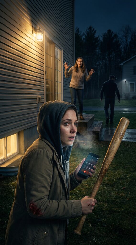 I hauled myself up, scraping my ribs on the sill, and dropped outside onto frozen grass. Pain lit up my side, but I ran anyway—straight into the yard, toward the neighbor’s porch light.