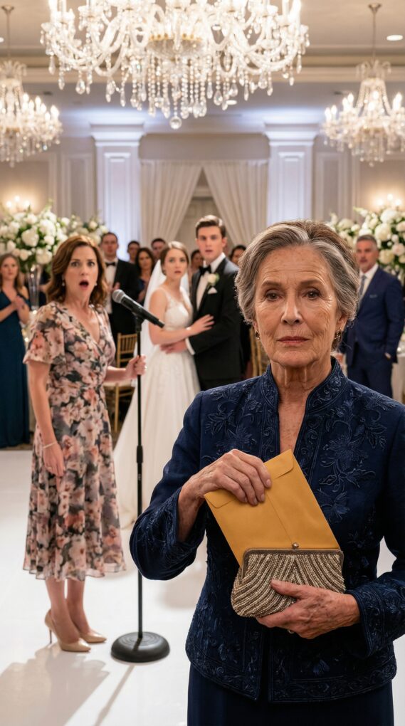 My name is Eleanor Whitman, and at my grandson Daniel’s wedding, my own daughter tried to publicly corner me into giving away my Palm Beach house. The reception hall glittered with crystal chandeliers and white roses, 233 guests seated at round tables, champagne flowing. I was proud, emotional, watching Daniel beam beside his bride, Sophie. Then my daughter, Margaret, stood up unexpectedly during the toasts. She tapped her glass and smiled too widely. “Before we continue,” she said, her voice carrying through the microphone, “I think it’s time Mom shared her big surprise.” My stomach tightened. I hadn’t planned any “big surprise.” I leaned toward her and whispered, “Margaret, what are you doing?” She ignored me. “As everyone knows,” she continued, “my mother owns a beautiful home in Palm Beach. It’s only right that she gifts it to Daniel and Sophie as a wedding present.” A ripple of murmurs swept across the room. I felt heat rise to my face. “Margaret,” I said firmly, now speaking into the microphone she had thrust toward me, “that is not something I agreed to.” Her smile vanished. “Oh, don’t be selfish, Mom,” she snapped, forgetting the microphone was still on. “You barely use it. What’s the point of holding onto it when your grandson is starting his life?” The humiliation was instant and suffocating. Guests shifted uncomfortably. Daniel looked stunned. Sophie stared at her plate. I straightened my shoulders. “I will not be pressured into giving away my property,” I said calmly. Margaret’s face hardened. “Fine. Then everyone can see what kind of grandmother you really are.” A few guests gasped. I could feel eyes burning into me from every direction. My heart pounded, but I refused to crumble. Instead, I slowly reached into my evening purse. Margaret crossed her arms triumphantly, assuming I was about to surrender. Instead, I pulled out a thick envelope. The moment I placed it on the table in front of her, the entire hall fell silent.