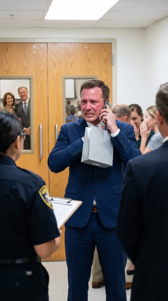 I froze with my phone raised. Two security guards filled the doorway, silent. One grabbed my wrist. “Ma’am, you’re trespassing.”