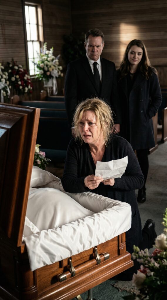 I stood up, knees wobbling. “Don’t touch me,” I warned, and walked away from the casket before grief could pin me there. People tried to stop me—“Honey, are you okay?”—but I pushed through the doors into the parking lot, where the January air hit like a slap.