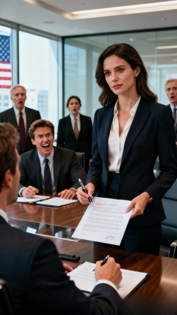 “Before we conclude,” he said carefully, “there is one additional signature required… from the new majority owner.”