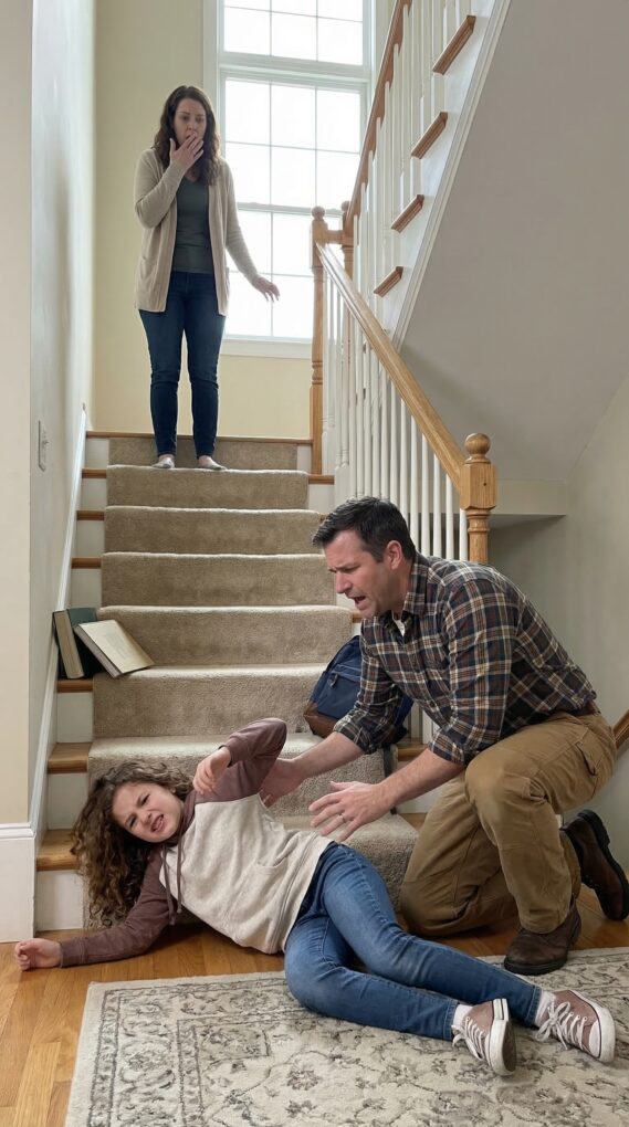 I came home early and saw the moment that shattered my life. My twelve-year-old daughter was falling down the stairs, her eyes locked on mine as she screamed, “Dad!” At the top stood my wife, her hand still extended. “It was an accident,” she said, but I knew what I saw. I thought that was the worst truth I’d uncover—until I learned she had been part of my first wife’s death all along.