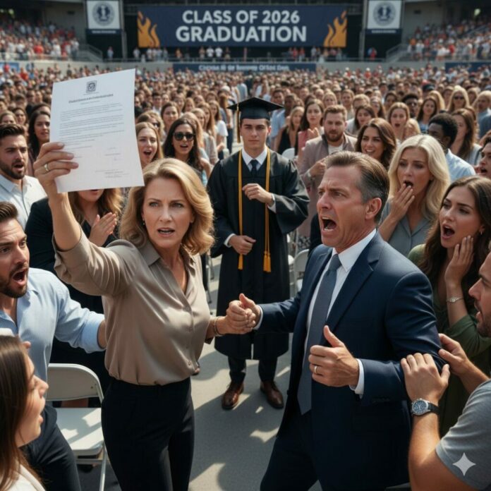“Everyone, listen up!” Mark shouted, his voice echoing far louder than it needed to. People began to turn, their smiles fading into confused frowns. “I have an announcement to make. Today isn’t just a graduation; it’s an independence day for me, too. Sarah, I’m divorcing you. I’m done with this pathetic excuse for a marriage, done with your constant nagging, and done pretending I care about this family.” A suffocating silence fell over the crowd. My breath hitched in my throat as I felt hundreds of judgmental eyes boring into me. Mark smirked, leaning down to hiss in my ear so only I could hear his final jab: “I’ve already emptied the joint account and moved into the condo I bought with the woman I actually love. You’re left with nothing, Sarah. Happy graduation.” He turned to walk away, leaving me shattered in front of everyone I knew, but as he reached the end of the row, I stood up, my trembling hands reaching into my designer clutch. “Mark, wait!” I screamed, my voice cracking. “You forgot one thing! You didn’t just empty the bank—you signed the wrong papers last night while you were drunk!”