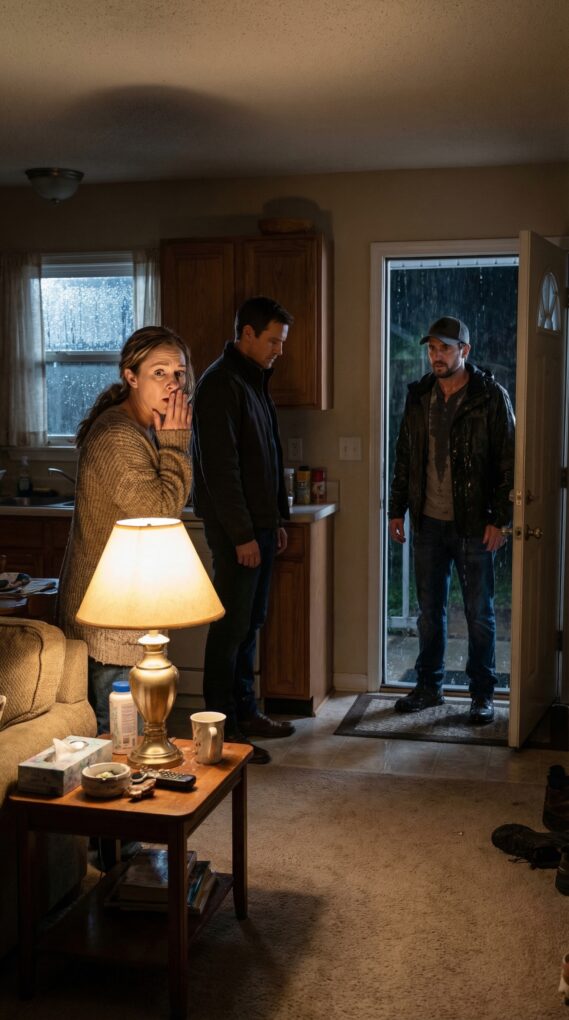 My blood turned cold. Daniel stood in the kitchen doorway, thinner than before, a duffel bag over one shoulder, rain on his jacket, his eyes locked on Tyler.