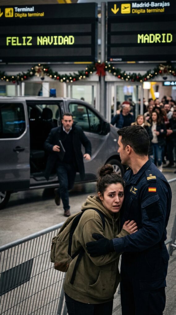 Me llamo Lucía Ortega, tengo veintinueve años y durante tres años hice turnos dobles limpiando habitaciones de hotel, vendiendo café en una estación y durmiendo poco para ahorrar lo suficiente y traer de vuelta a mi hermano menor, Diego, que se había alistado en la Armada y llevaba once meses sin pisar Madrid. Aquella mañana de Navidad llegué al aeropuerto de Barajas con una mochila vieja, una sudadera gris y el corazón golpeándome el pecho como si quisiera adelantarse a mi cuerpo. No iba a recoger a nadie oficialmente; Diego me había escrito dos semanas antes que quizá no le darían permiso. “No te hagas ilusiones”, me dijo por videollamada. Pero yo conocía su forma de mentir para protegerme.