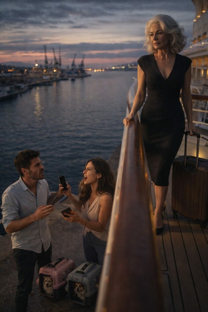 A las siete y cuarto, ya embarcada, mi teléfono empezó a vibrar sin descanso. Primero Daniel. Después Lucía. Luego Marta. Después otra vez Daniel, una y otra vez, hasta llenar la pantalla. No contesté de inmediato. Me senté cerca de una ventana enorme desde la que podía verse el puerto despertar y pedí un café. Cuando por fin abrí los mensajes, el primero de Daniel era una foto de los perros en el coche y la frase: “¿Dónde estás?”. El segundo: “Mamá, esto no tiene gracia”. El tercero: “Las niñas están llorando”. Y el cuarto, el único honesto de todos: “¿Cómo has podido hacernos esto?”.