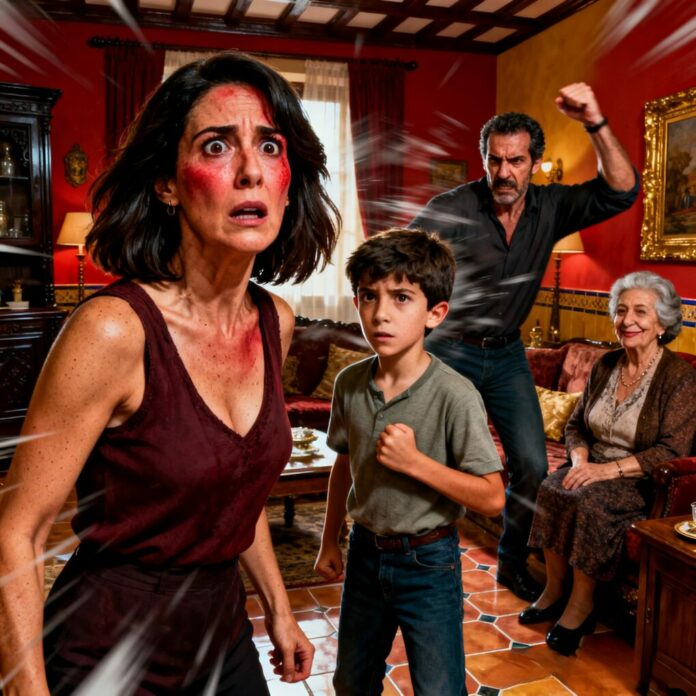 Nunca olvidaré el sonido. “No me contradigas delante de mi madre”, dijo él, y la bofetada cayó limpia, delante de todos. Ella sonrió, satisfecha, sin levantarse del sillón. Yo me quedé muda, con la cara ardiendo y el orgullo roto. El silencio pesaba más que el golpe… hasta que mi hijo de diez años se puso en pie y habló. Lo que dijo cambió todo. ¿Quieres saber por qué nunca volvieron a tocarme?