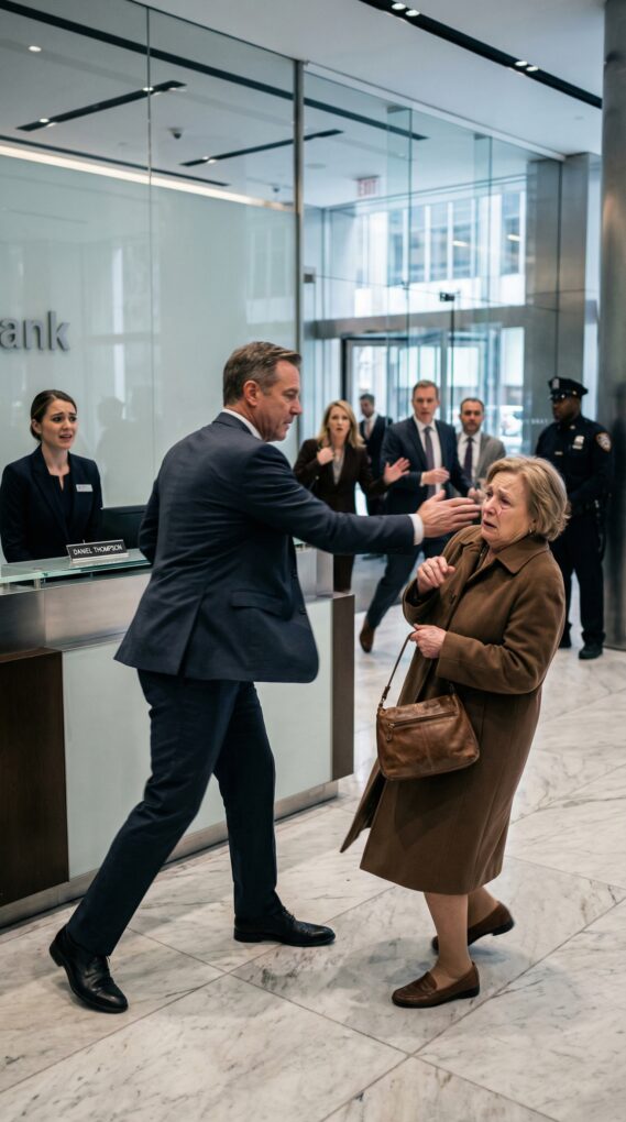 Martha pushed herself up, stunned and humiliated, tears blurring the bank’s bright lights as she staggered outside—where her shaking hands reached for her phone, and she dialed the one person who would believe her.